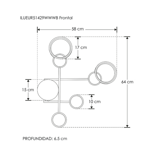 Luminario decorativo de muro triple circulo 15W luz cá...