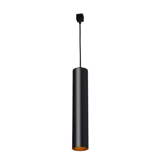 Luminario de LED cilíndrico para suspender en riel electrificado, blanco cálido, 10 Watts, óptica de 30°, aluminio acabado negro, 110-240V ca, protección IP20