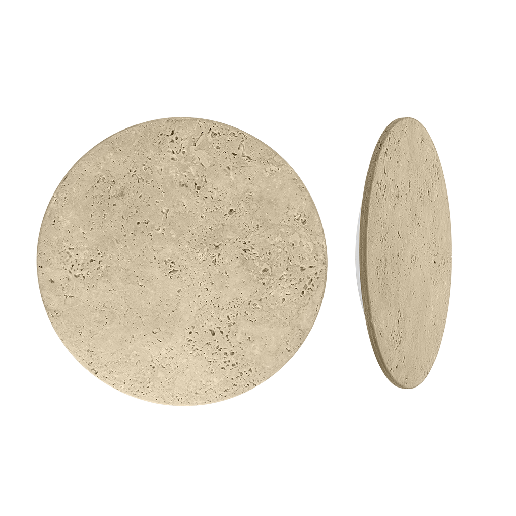 Luminario de LED para pared, circular, blanco cálido, 3 Watts, óptica 360° (efecto de luz indirecta perimetral), de sobreponer, travertino acabado beige, 85 - 265 V ca, protección IP54